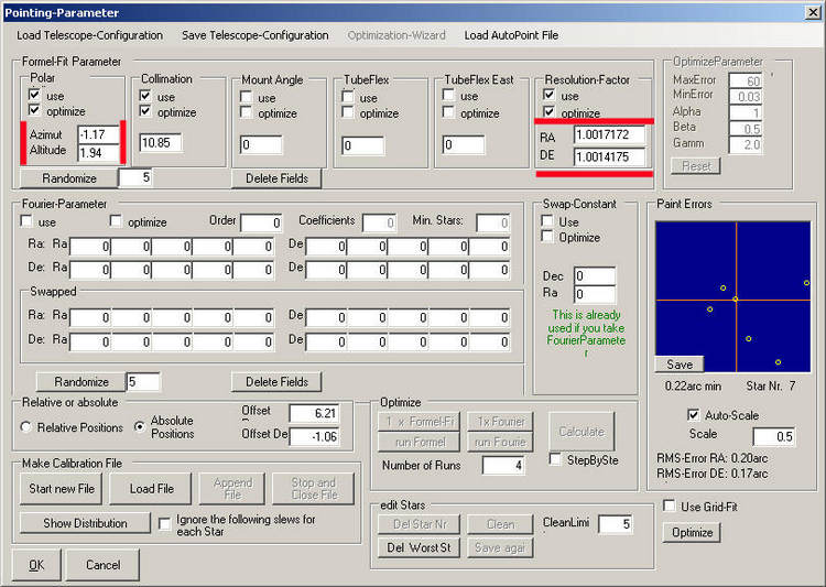 calibrated during the first polar alignment and the 'Resolution factor' shows