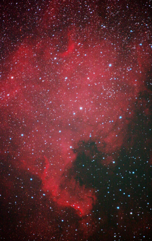 North America nebula NGC7000 wide angle view with 500mm telephoto lens.