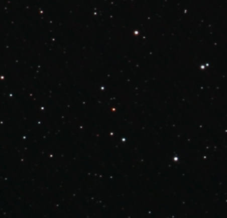 star Interesting star near M57. It is quite prominent in the DSS image, but faded considerably in my image. Cartes du Ciel gives the star as GSC2643.1656, magnitude 12.63+/-0.40 Stellarium gives the magnitude as 15.35 RA 18h54m10.01s DE +32°49'51.2" |