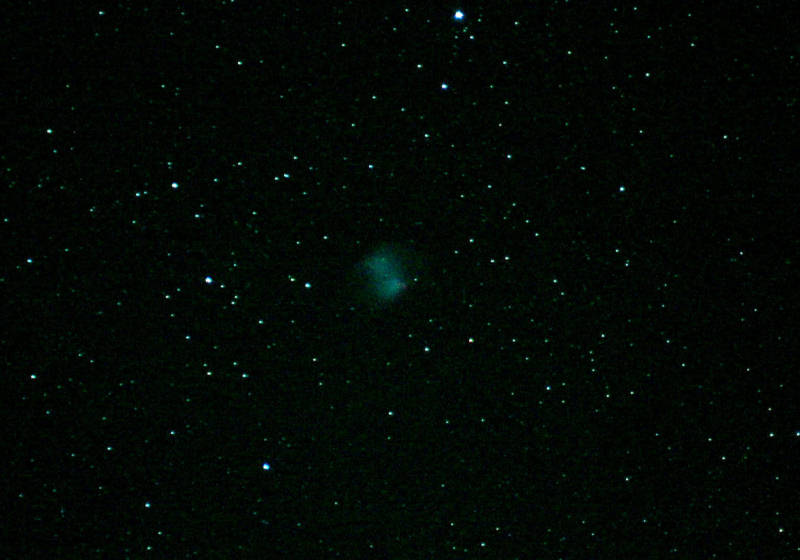 June 6th 2008Dumbbell Nebula (also known as Messier 27 or NGC 6853) is a planetary nebula in the constellation Vulpecula. Canon 350D, Sigma 50-500mm f/4-6.3 EX DG APO lens, 15x30 seconds