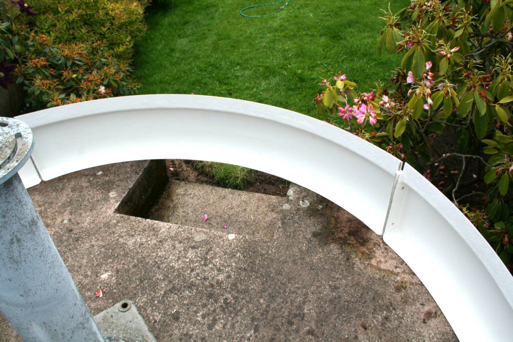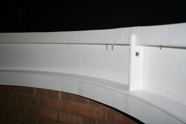 | 25th August Curved MDF shelf and fascia in place to hide unsightly nuts and bolts that fix the dome to the roof. |