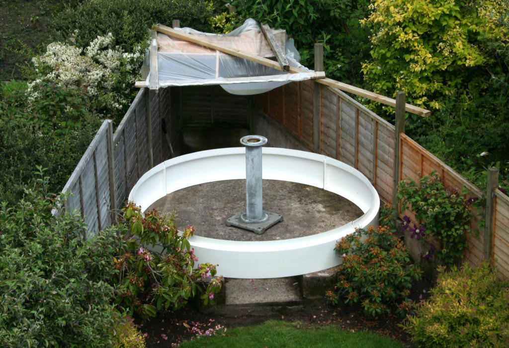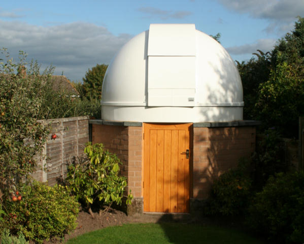 11th June 2009 The parts for the dome from Pulsar Observatories arrived this morning! The dome assembled on the patio... The dome is the 2.7metre diameter version. I have opted for the track and dome, and will be building a substantial brick walled enclosure. Twenty years ago I built the concrete base at the bottom of the garden in preparation. They say patience is rewarded... Miraculously, the track fits the base perfectly! (The brick walls will raise the track to the level of the fence panels). The pier may be used - it was acquired 20 years ago also... ![]() I left a step in the concrete base to accommodate the door. This makes the door much taller to allow easier access. ![]() |