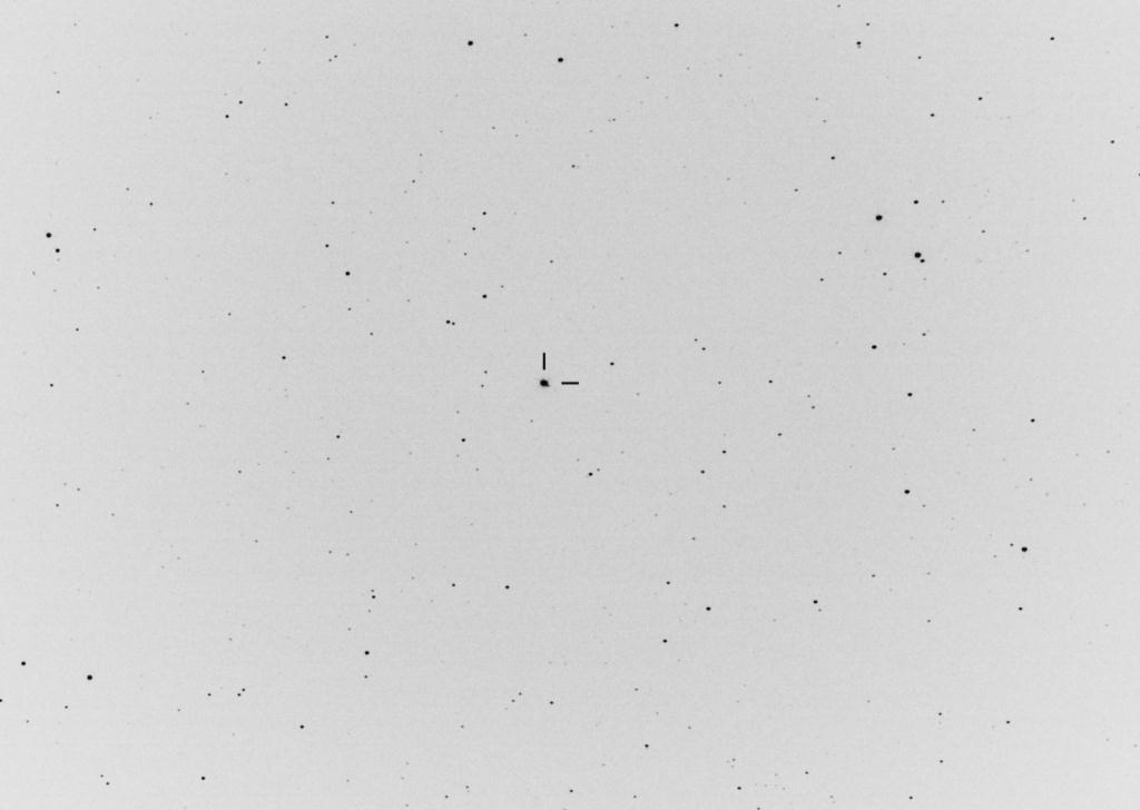 | Sharpest image shows Triton a small distance from Neptune. Neptune is magnitude 7.8, Triton is magnitude 13.5 which is 191 times dimmer than Neptune. ![]() |